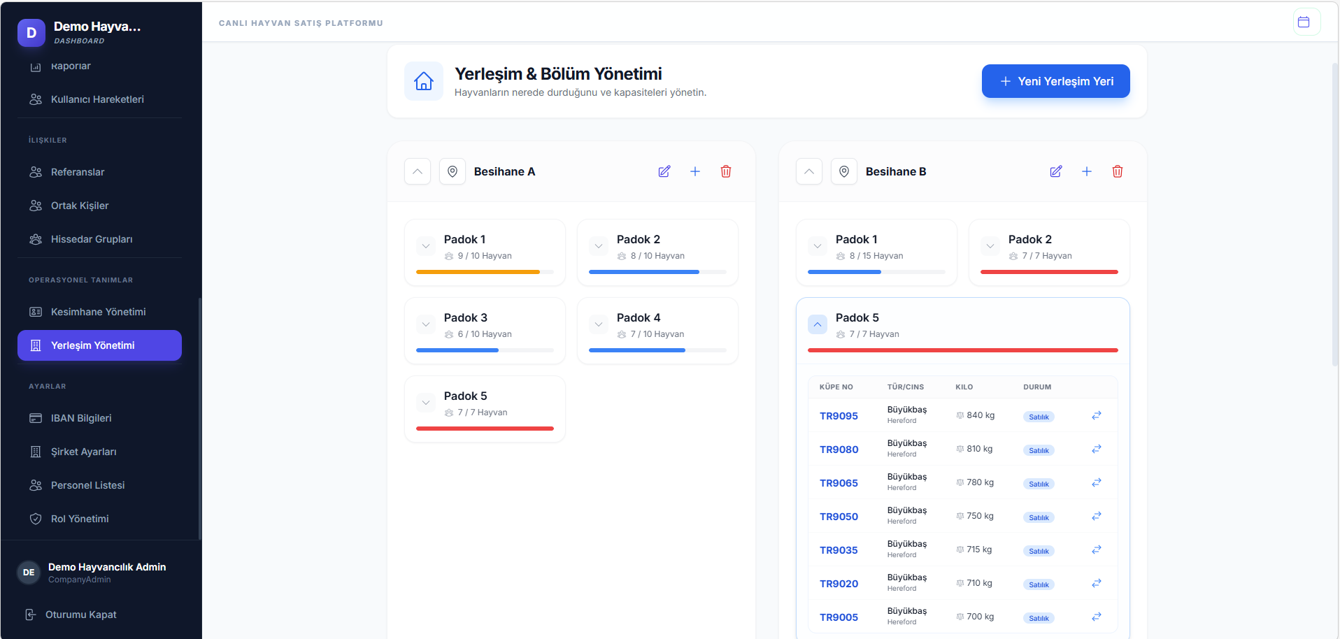 Hayvan Listesi (Kart Görünümü)