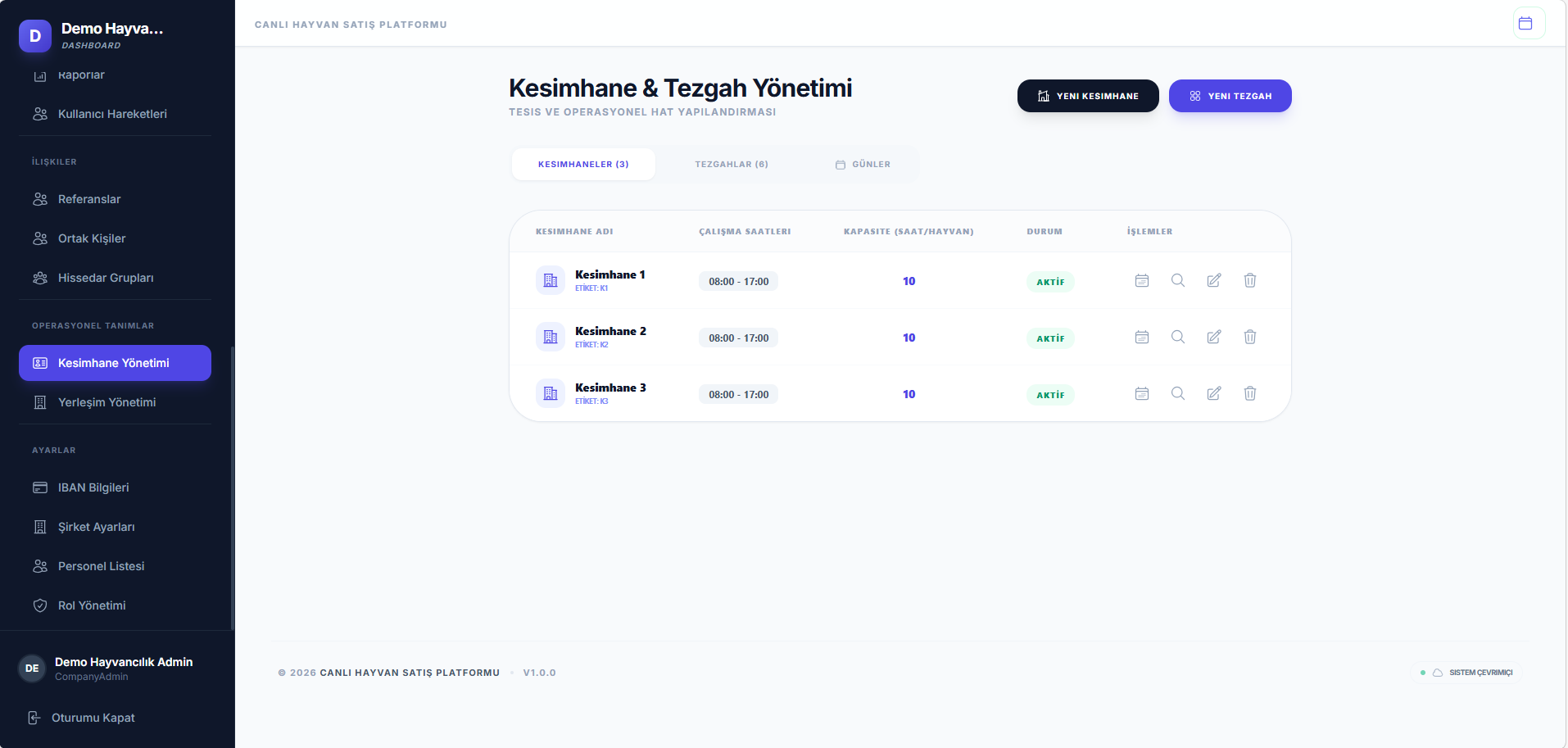 Kesimhane içi dev takip ekranları desteği