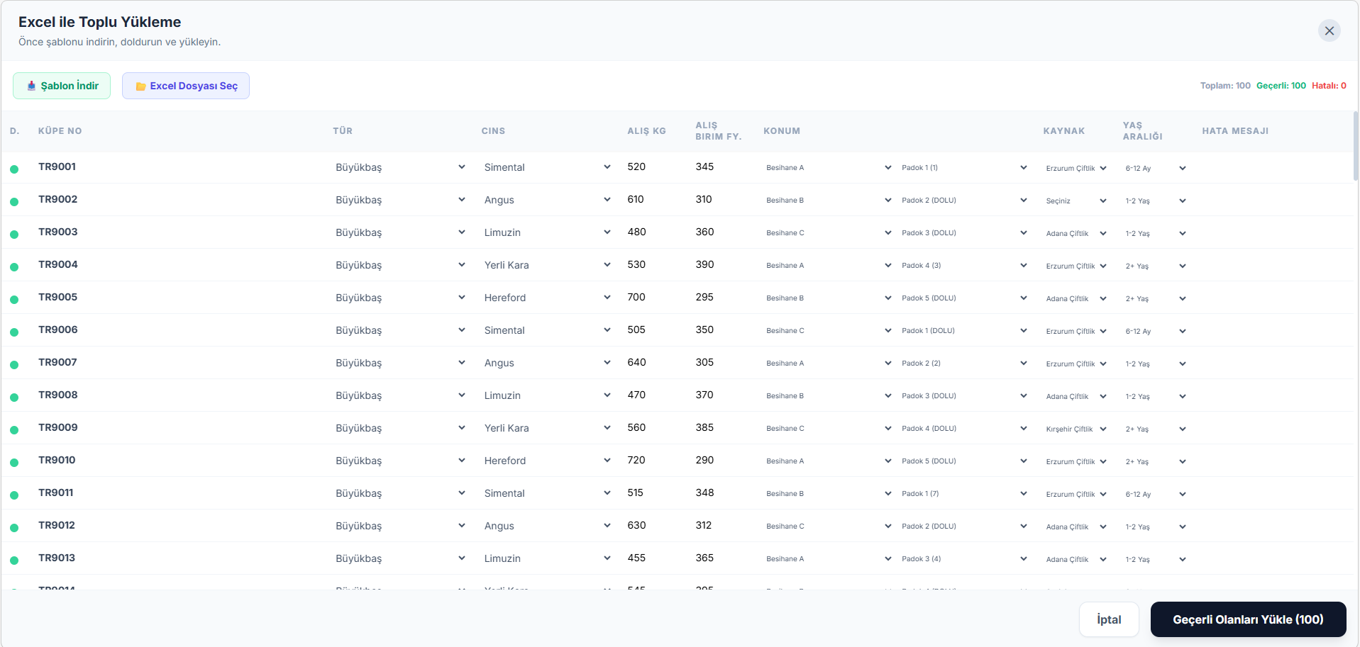 Excel Toplu Yükleme
