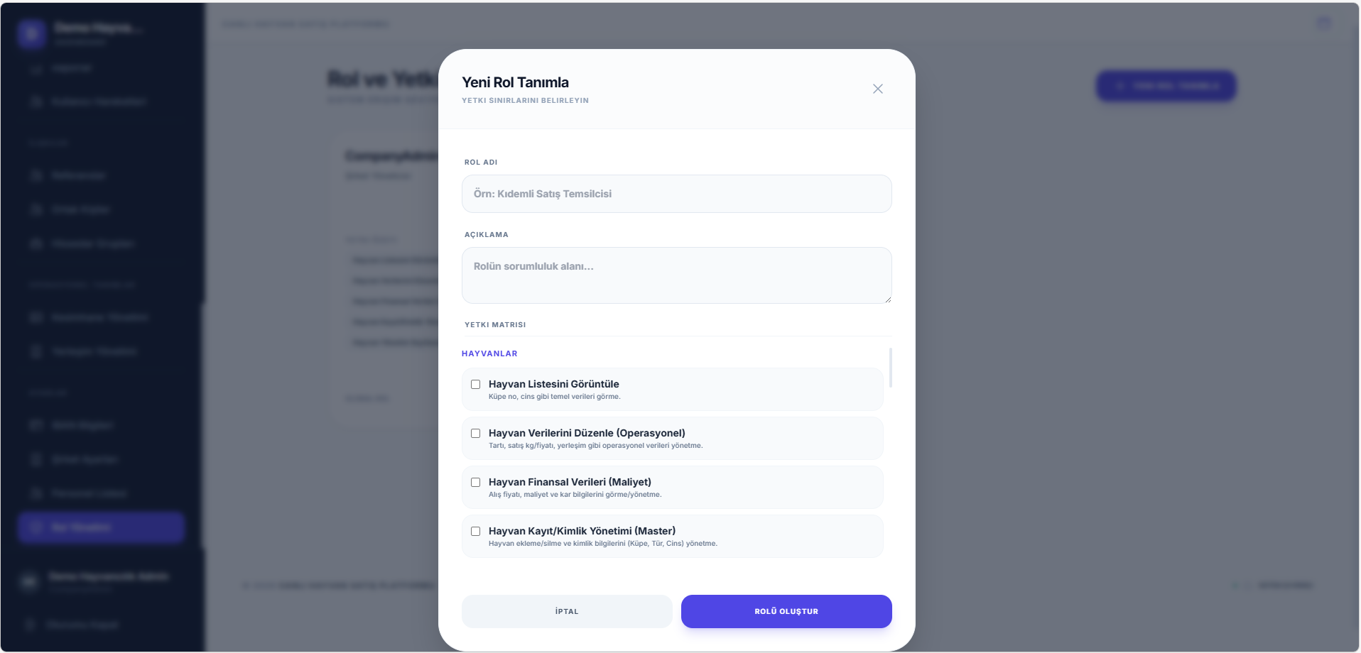 Rol bazlı detaylı erişim yetkileri